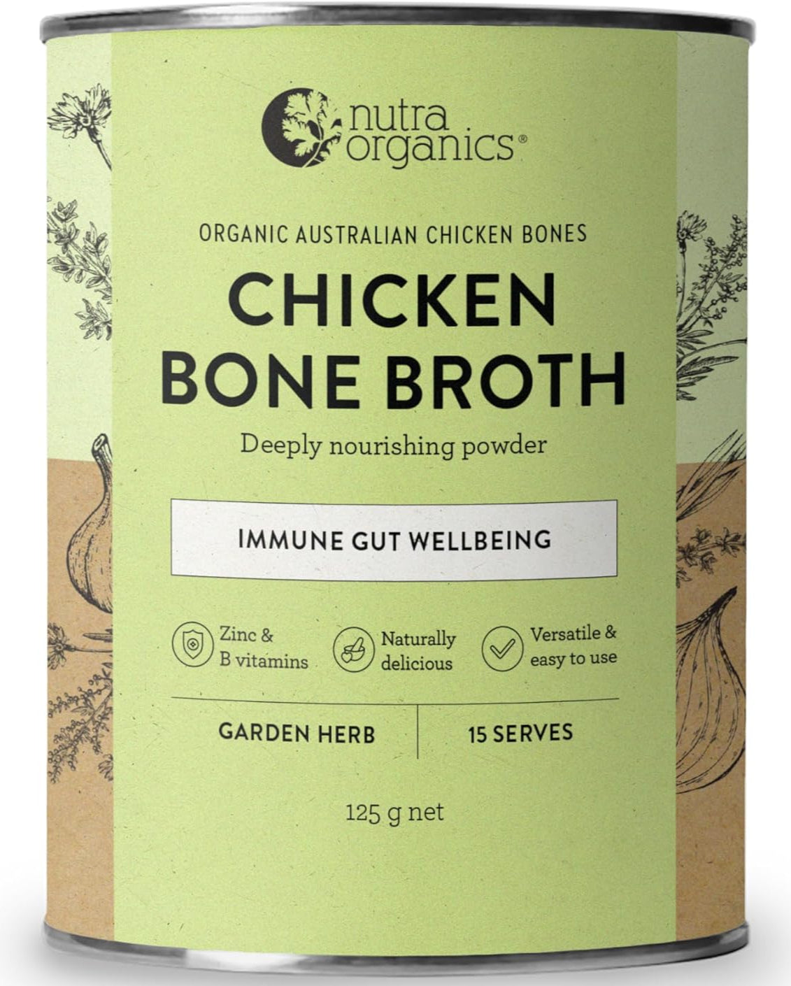 Made with Australian certified organic chicken bones, the broth is pressure-cooked then gently dried into a powder to retain maximum nutrients and flavour. It’s a delicious way to support immunity, gut wellbeing, and makes a wholesome alternative to traditional chicken stock for cooking.