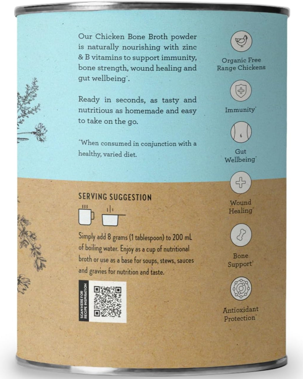 Nutra Organics Chicken Bone Broth Homestyle Original is naturally nourishing with zinc & B vitamins to support immunity, energy and gut wellbeing. Naturally delicious and gently refractance dried into a powder for maximum nutrients, our broths won't be beaten on flavour & nutritional benefits.