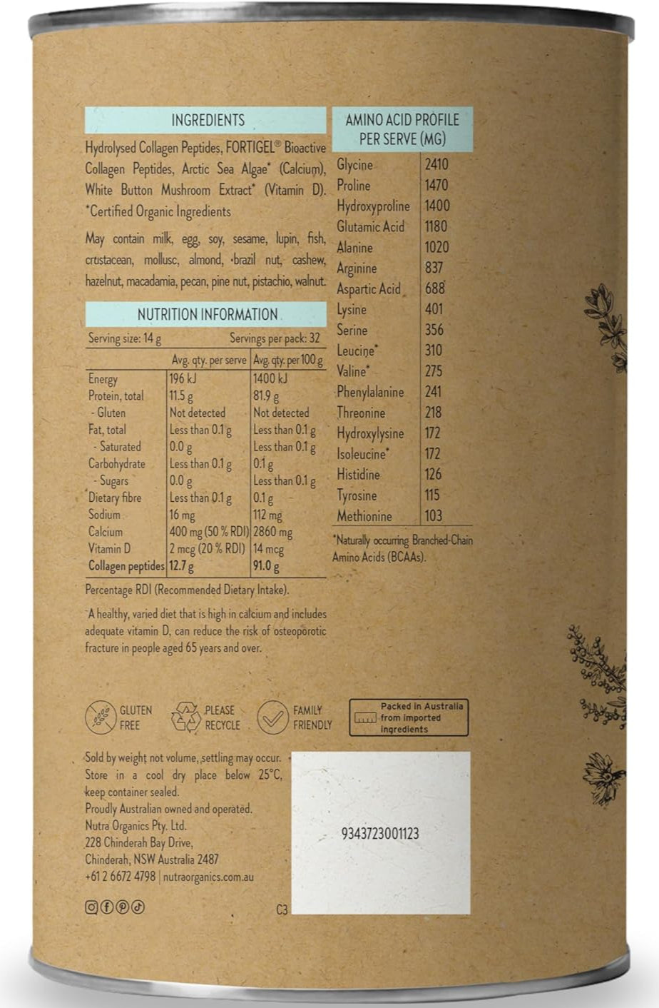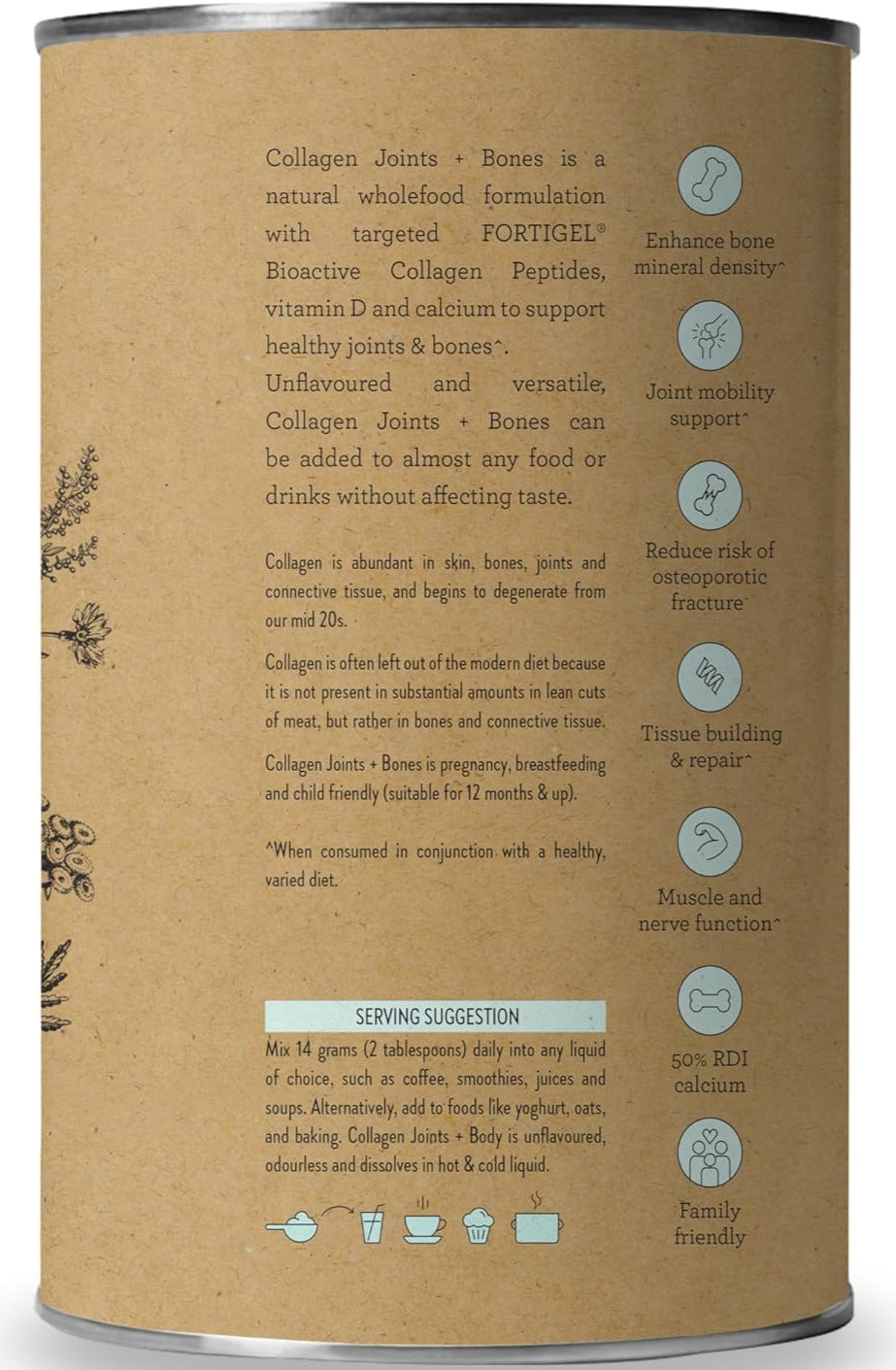 Nutra Organics Collagen Joints + Bones (previously known as Collagen Body) is a natural wholefood formulation designed to support healthy joints and bones. It contains targeted FORTIGEL® Bioactive Collagen Peptides, along with vitamin D and calcium (50% RDI), to promote mobility and joint health—ideal for both active lifestyles and mature adults.
