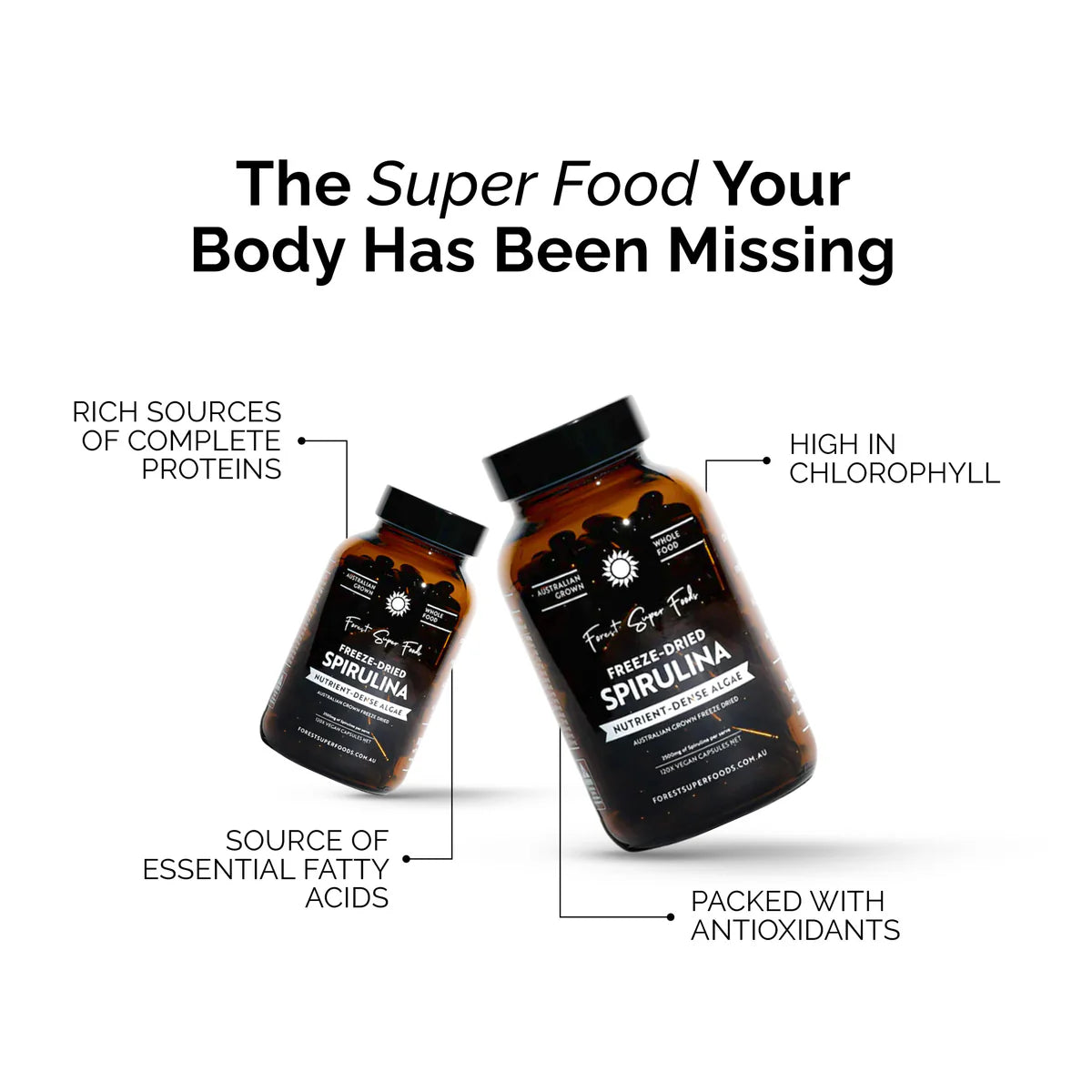 Australian Grown Freeze Dried Spirulina (Arthrospira platensis).