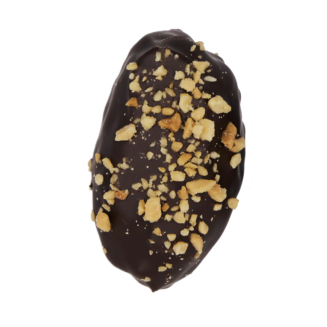 A wholesome, indulgent treat in a single bite. One soft Medjool date is filled with crunchy peanut butter, wrapped in date-sweetened dark chocolate, and topped with roasted Australian peanuts for extra crunch and flavour.