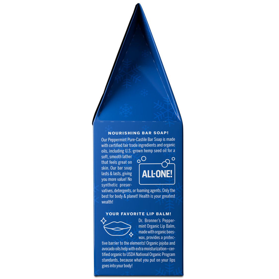 JOY! The ultimate self-care kit with a peppermint burst! Perfect for travel and gifting! Care for yourself with Dr. Bronner’s soap & lip balm – made with nourishing organic oils. Revive and renew with our peppermint aroma!