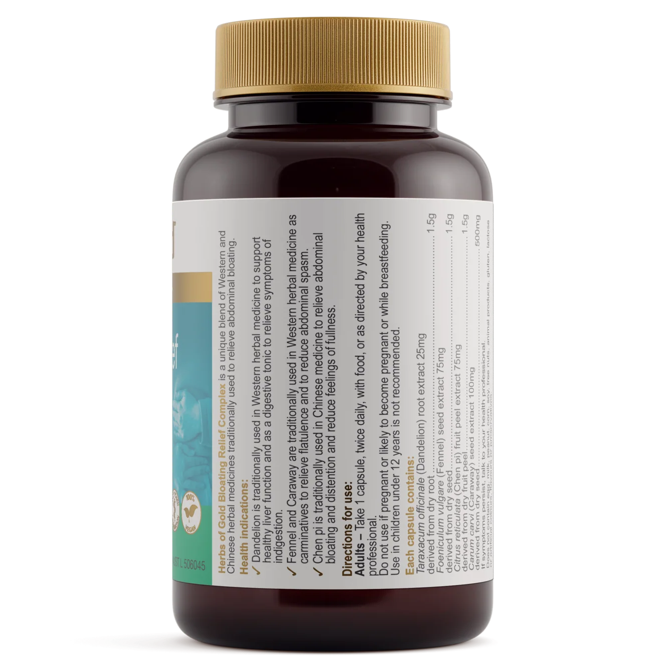 Herbs of Gold Bloating Relief Complex is formulated with a blend of herbs traditionally used in Western herbal medicine and Chinese medicine to ease abdominal bloating and support healthy digestion.