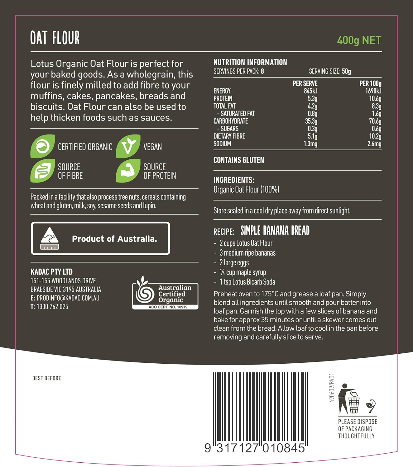 Organic Oat Flour (100%).