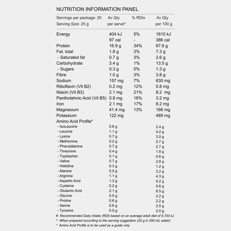 This protein blend heroes the luscious and rich flavours of cacao, which is high in antioxidants, B vitamins, iron and magnesium, necessary for immune system function, energy production and overall well-being.