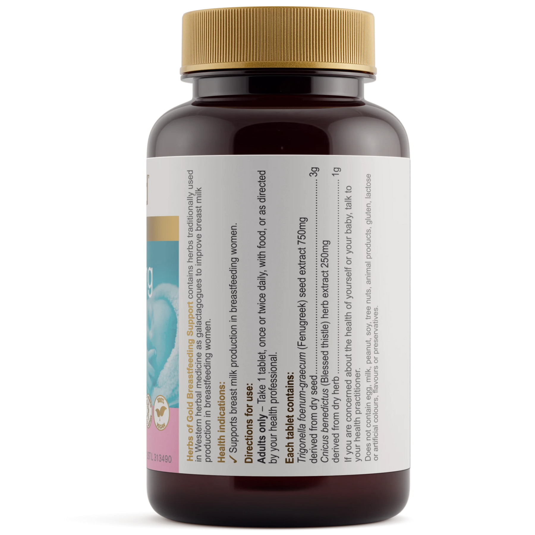 Herbs of Gold Breastfeeding Support contains herbs to support breast milk production in breastfeeding women.