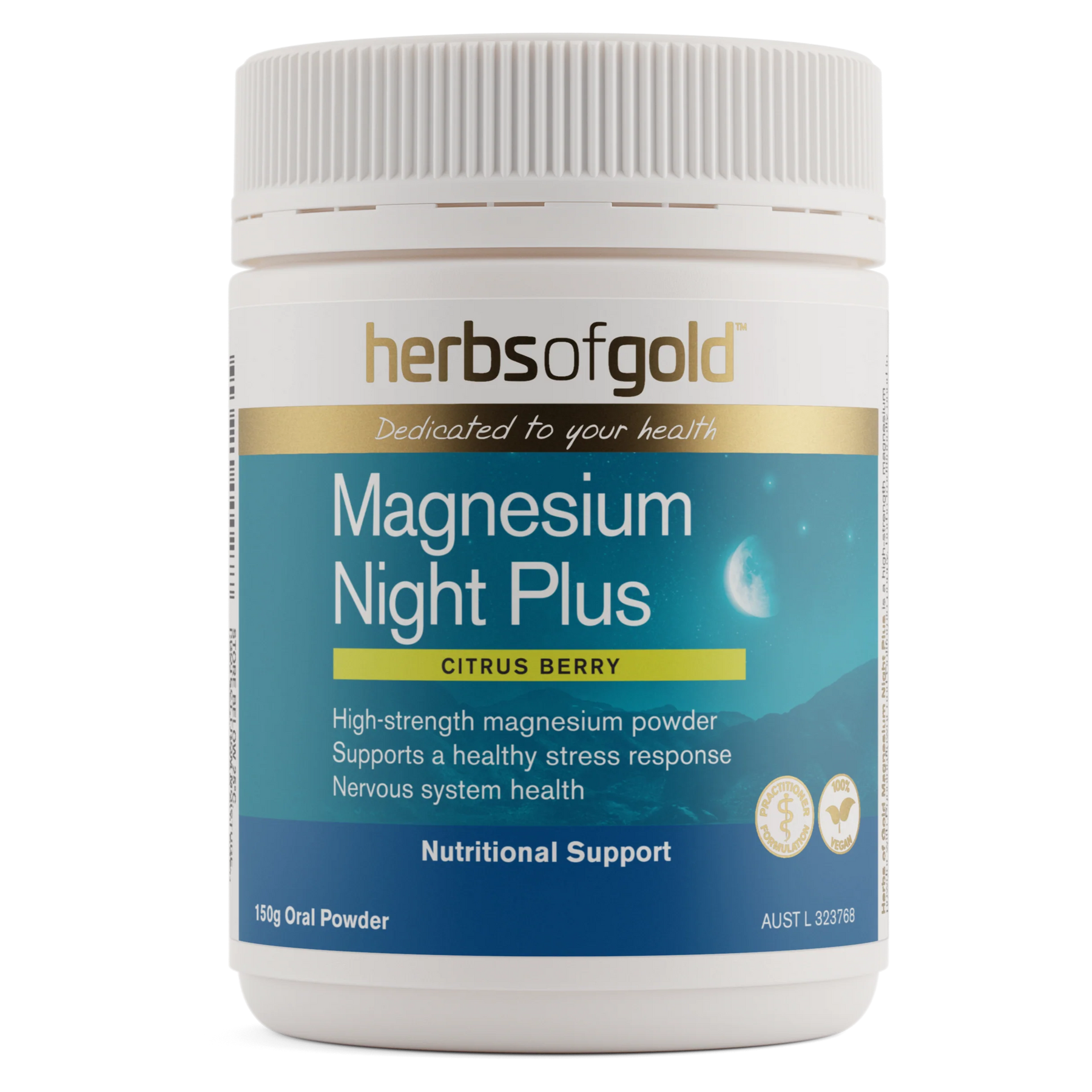 - Herbs of Gold Magnesium Night Plus contains 320mg of magnesium per serve from magnesium citrate and magnesium glycinate, two well-absorbed forms of magnesium.