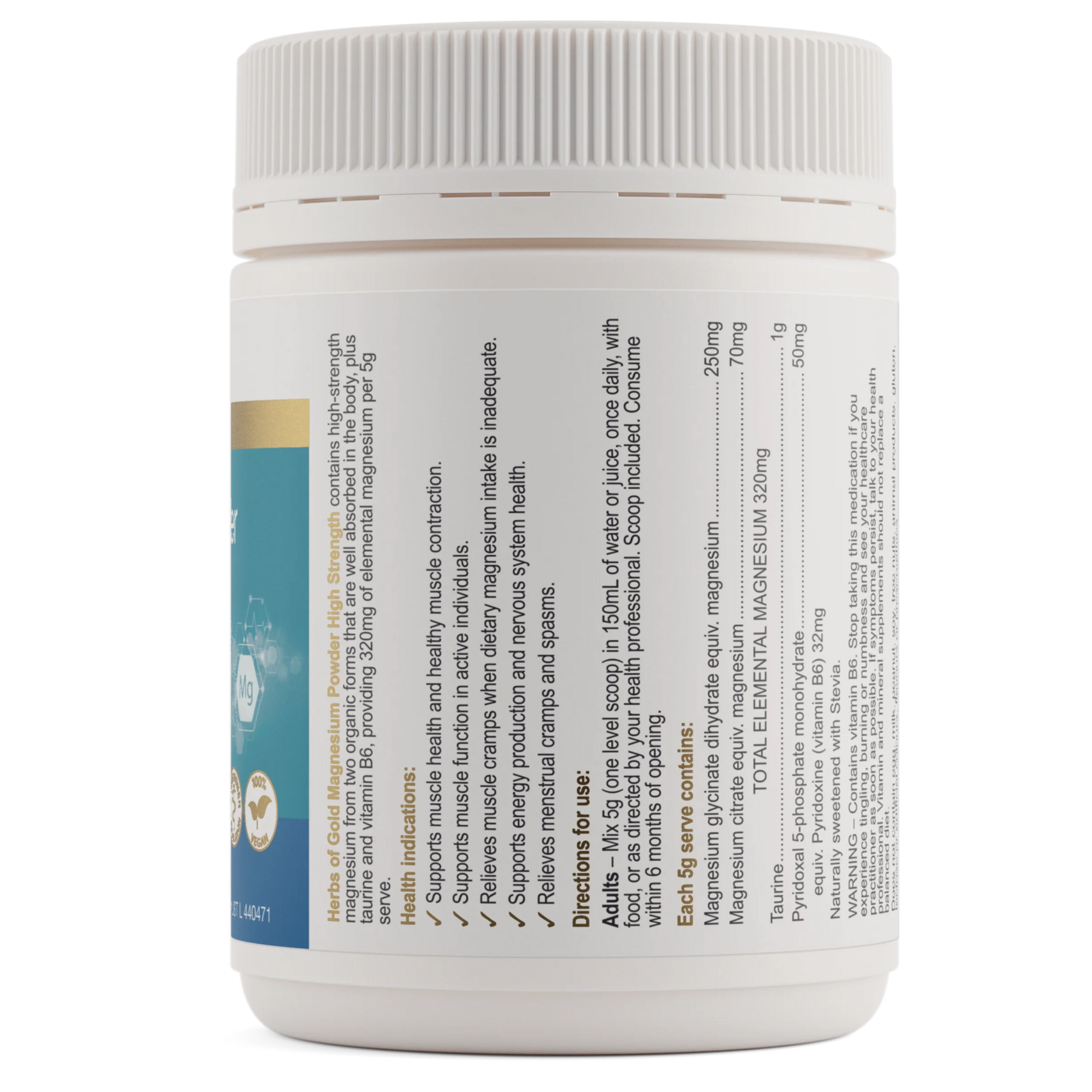 Herbs of Gold Magnesium Powder High Strength provides well-absorbed forms of magnesium in a delicious pineapple flavoured powder to support muscle health.