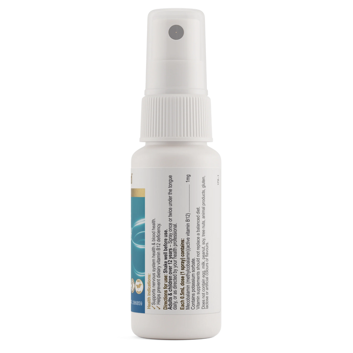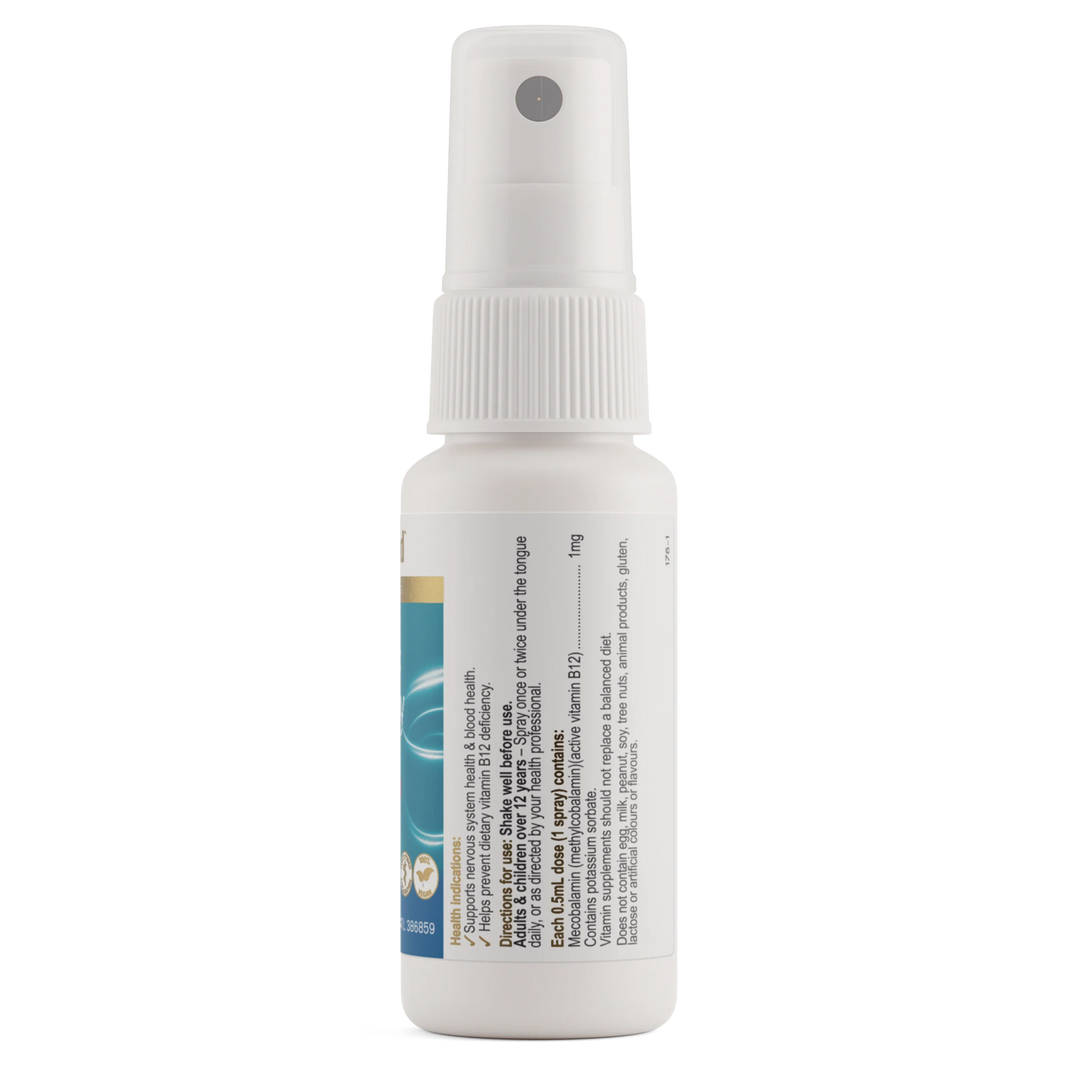 • Activated B12 Spray assists the metabolism of proteins, carbohydrates and fats, supports energy production and immune and cardiovascular system health.