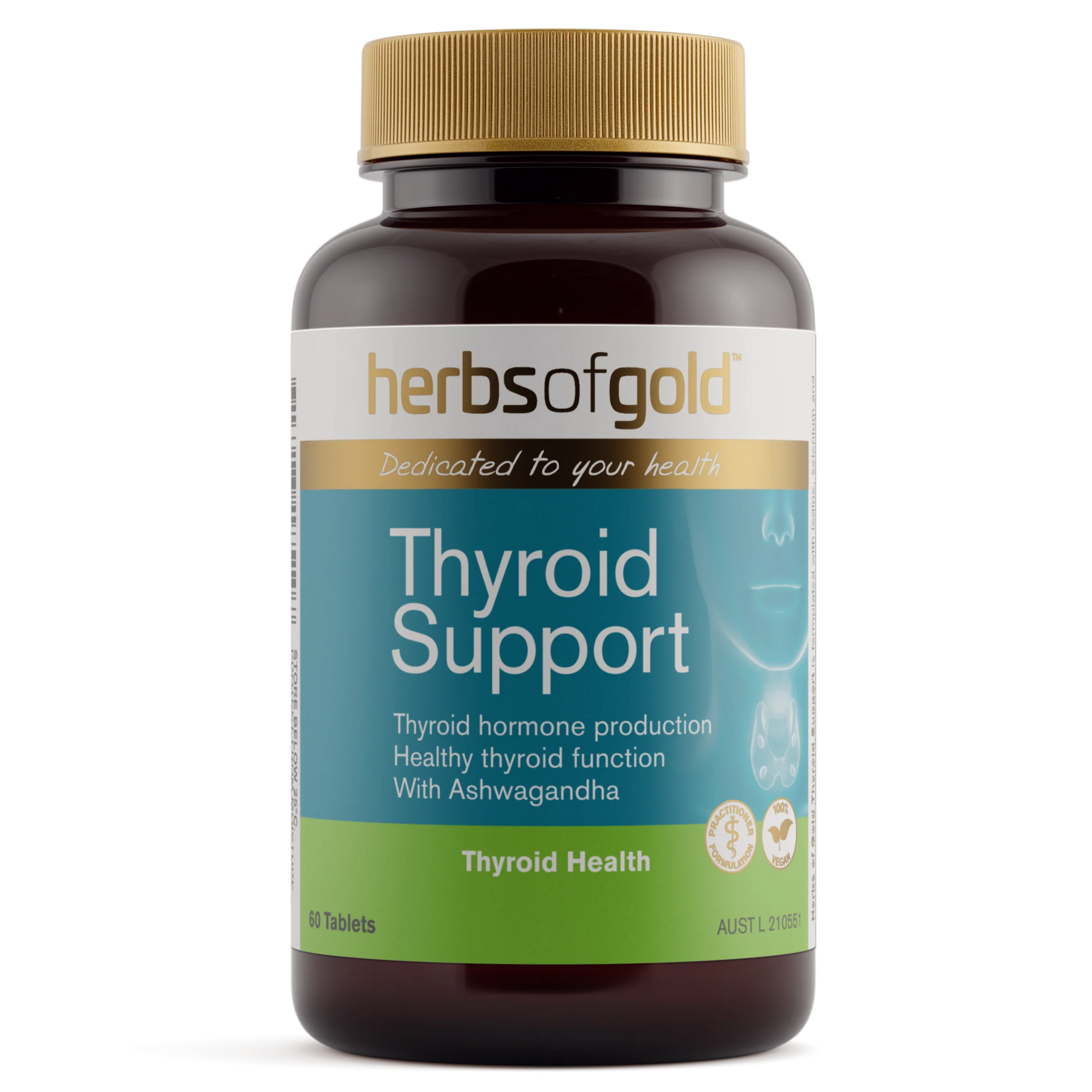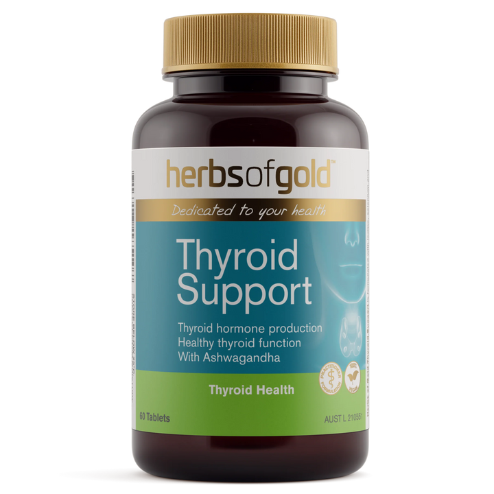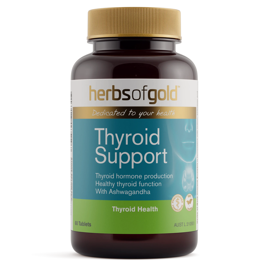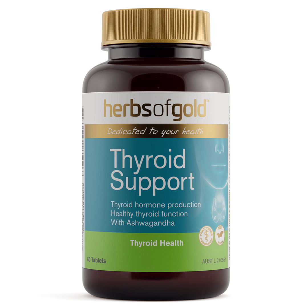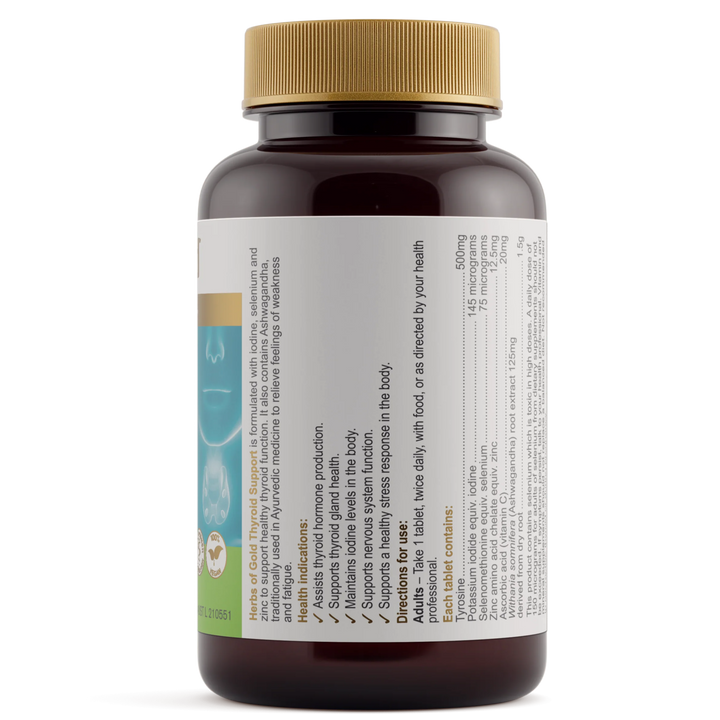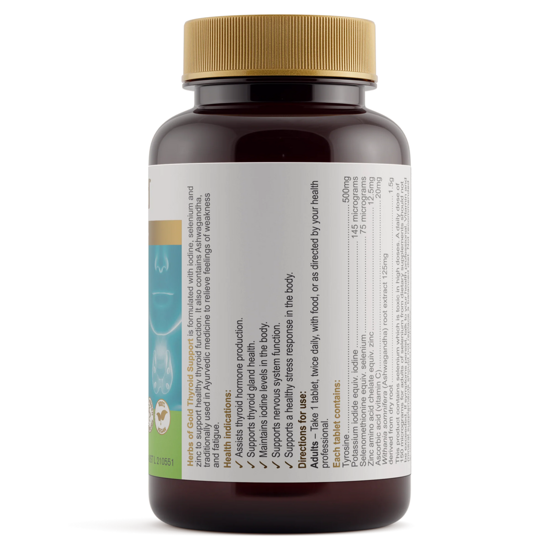 Herbs of Gold Thyroid Support is a comprehensive blend of vitamins and minerals, formulated to support thyroid gland health.