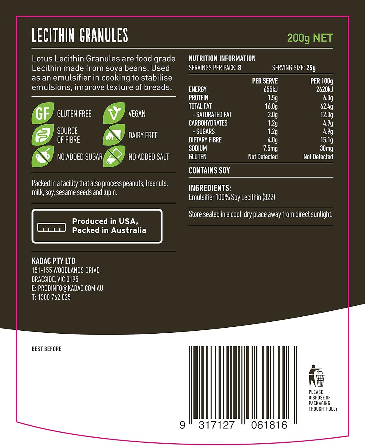 Lecithin Granules are a soy-derived lecithin that is naturally gluten free and suitable for vegetarian diets. They are made from non-GMO soya beans and are packaged in a resealable bag to preserve their freshness.