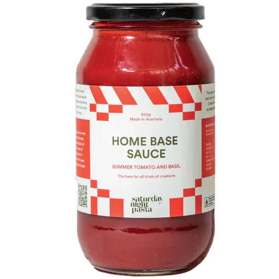 Home Base is a rich, smooth, slow-cooked tomato and basil sauce, made and bottled in the height of summer when local Australian tomatoes are bursting with flavour and the basil is at its most fragrant.